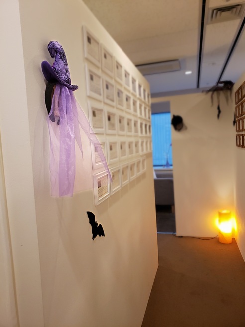 サロン内は各お部屋ごとに仕切られ、落ち着いた照明とナチュラルなインテリア、そしてハロウィンのデコレーションが印象的。