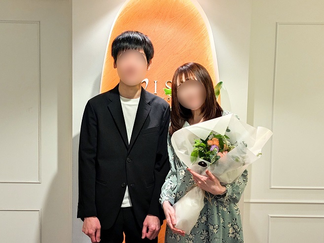 今回ご紹介するのは、柔らかな空気感がとても心地よいお二人。 交際してから毎日やりとりを重ねながら、少しずつ絆を深めてこられました。 そんなお二人に、婚活を始めたきっかけや、思い出に残っているエピソード、そしてプロポーズの場面まで、たっぷりお話を聞かせていただきました。